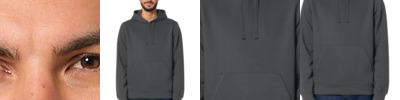 A pullover hoodie that puts your brand in the spotlight. This midweight style is both sustainable and versatile, ideal for year-round layering. 8.3-ounce (280 GSM) 80% organic combed ring spun cotton/20% recycled polyester brushed 3-end fleece, cotton face Self-fabric lined hood Dyed-to-match flat drawcords Stitched buttonhole eyelets Herringbone back neck taping Self-fabric half moon at back neck 1x1 rib knit cuffs and hem Flat topstitch on all seams Front pouch pocket with flat topstitch 100% recycled polyester tear-away label Colors up to 5XL: Anthracite, Black, Bottle Green, French Navy, Heather Grey, Red, Vintage White, White Medium fit: Designed for a tidy fit, trim across the shoulders.